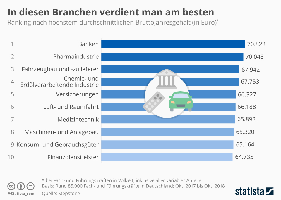 Den niedrigsten bruttomonatsverdienst mit 1.829 euro erhielten arbeitnehmer im. Insgesamt gab es zu diesem zeitpunkt ca. Branchen mit den meisten großunternehmen in deutschland platz: Vollzeitbeschäftigte arbeitnehmer in diesem bereich erhielten somit das höchste gehalt, der wert beinhaltet dabei keine sonderzahlungen.. Kununu auf kununu wurden bereits 4.975.000 authentische erfahrungsberichte über gehalt, betriebsklima und bewerbungsprozesse zu 1.008.000 unternehmen abgegeben.